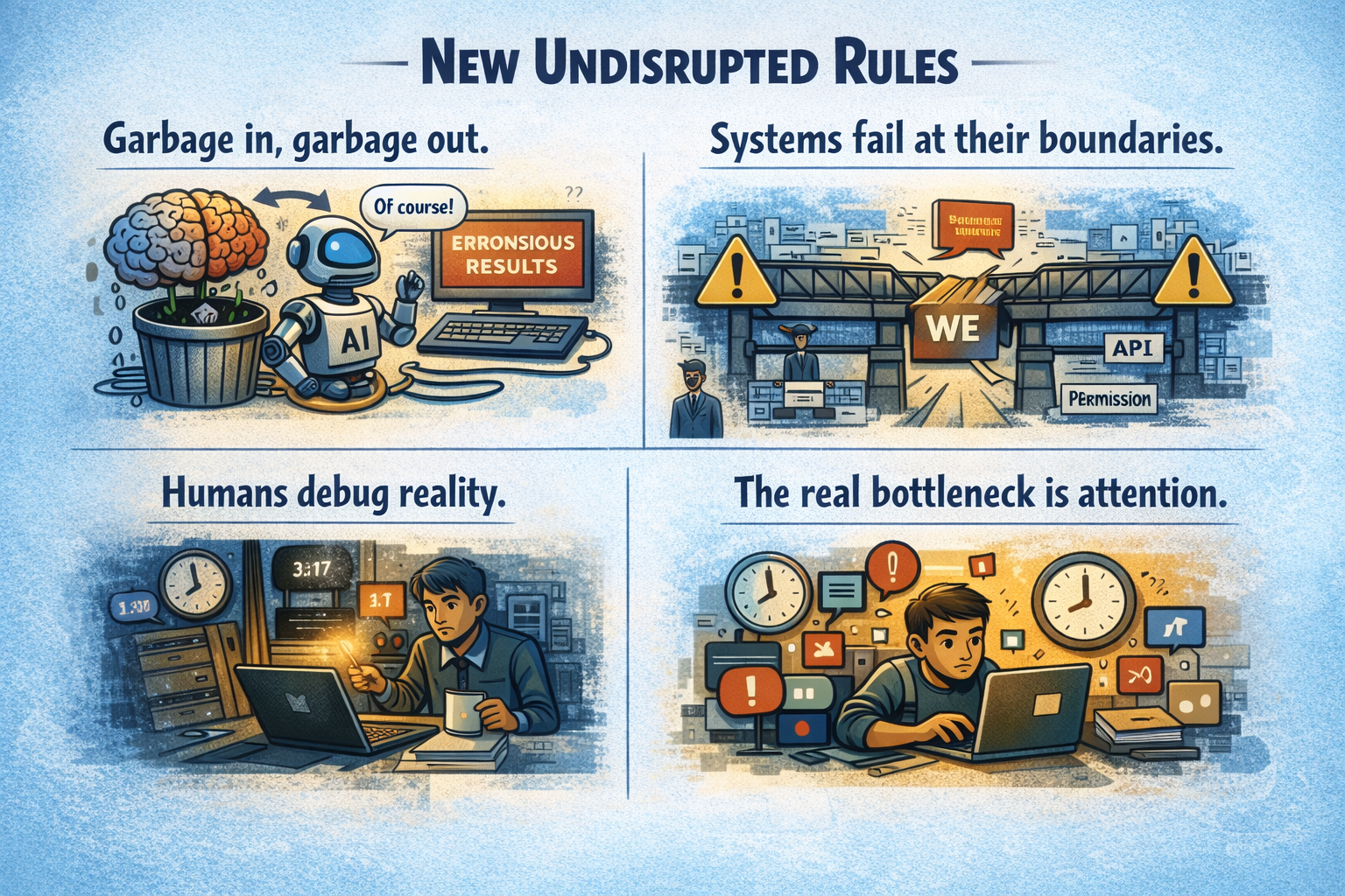AI did not break this rule — it amplified it. Bad data, vague prompts, unclear requirements, messy context → you just get faster, more confident nonsense.